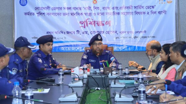 প্রতিবেদক: নোয়াখালী জেলার সকল থানার ‘নারী, শিশু, বয়স্ক ও প্রতিবন্ধী সার্ভিস ডেস্ক’-এ কর্মরত পুলিশ সদস্যদের পেশাগত দক্ষতা ও সংবেদনশীলতা বৃদ্ধি এবং ভুক্তভোগী-কেন্দ্রিক সেবা আরও উন্নত করার লক্ষ্যে দুই দিনব্যাপী “মানসিক