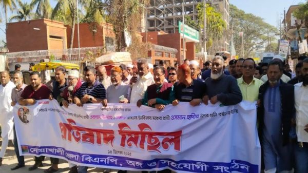 হাদীকে হত্যা চেষ্টার প্রতিবাদে নোয়াখালীতে বিএনপির বিক্ষোভ সমাবেশ