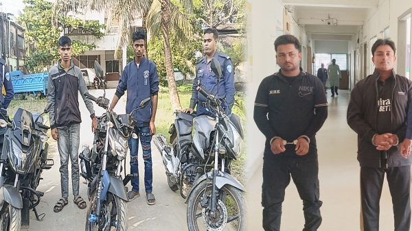 নোয়াখালী প্রতিনিধি: নোয়াখালীর কবিরহাটে পৃথক অভিযানে বিএনপি নেতার দুই ভাইসহ আন্তঃজেলা মোটরসাইকেল চোরচক্রের ৪ সদস্যকে গ্রেপ্তার করেছে পুলিশ। এসময় তাদের কাছ থেকে ৫টি চোরাই মোটরসাইকেল উদ্ধার করা হয়। বুধবার বিকেলে